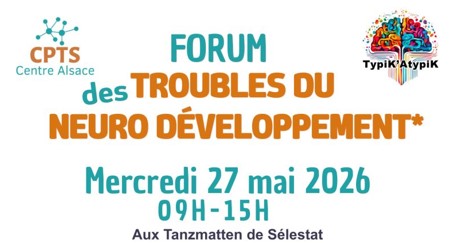 le 8 avril 2026 dans Actu régionale, Familles, Personnes concernées, ProfessionnelsLe CPTS Centre Alsace organise un forum sur les Troubles du neurodéveloppement. le mercredi 27 mai 2026 de 9h00 à 15h00 aux Tanzmatten de Sélestat